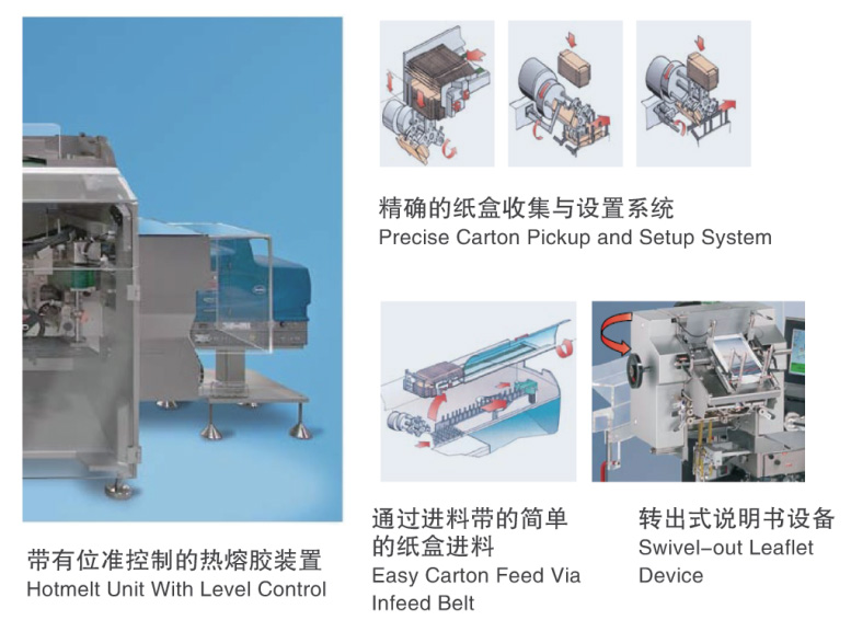 BM350平板式全自動高速泡罩包裝機是機電一體化的高科技產(chǎn)品,該機器的優(yōu)點在于:其陽臺是設(shè)計具有符合藥品生產(chǎn)質(zhì)量管理規(guī)范的基本及其結(jié)構(gòu),并且其包裝部分與傳動部分完全分個開來。主傳動部分可改為伺服傳動系統(tǒng),運行更平穩(wěn),有效降低噪音,參數(shù)調(diào)節(jié)更健康。最高速度可達400盒/分鐘,適用于泡罩板、瓶子、安瓿瓶、軟膏等形狀的產(chǎn)品裝盒。CM400高速智裝盒機是機電一體化的高科技產(chǎn)品,該機器的優(yōu)點在于:其陽臺是設(shè)計具有符合藥品生產(chǎn)質(zhì)量管理規(guī)范的基本及其結(jié)構(gòu),并且其包裝部分與傳動部分完全分個開來。主傳動部分可改為伺服傳動系統(tǒng),運行更平穩(wěn),有效降低噪音,參數(shù)調(diào)節(jié)更健康。最高速度可達400盒/分鐘,適用于泡罩板、瓶子、安瓿瓶、軟膏等形狀的產(chǎn)品裝盒。CM400高速智裝盒機是機電一體化的高科技產(chǎn)品,該機器的優(yōu)點在于:其陽臺是設(shè)計具有符合藥品生產(chǎn)質(zhì)量管理規(guī)范的基本及其結(jié)構(gòu),并且其包裝部分與傳動部分完全分個開來。主傳動部分可改為伺服傳動系統(tǒng),運行更平穩(wěn),有效降低噪音,參數(shù)調(diào)節(jié)更健康。最高速度可達400盒/分鐘,適用于泡罩板、瓶子、安瓿瓶、軟膏等形狀的產(chǎn)品裝盒。CM400高速智裝盒機是機電一體化的高科技產(chǎn)品,該機器的優(yōu)點在于:其陽臺是設(shè)計具有符合藥品生產(chǎn)質(zhì)量管理規(guī)范的基本及其結(jié)構(gòu),并且其包裝部分與傳動部分完全分個開來。主傳動部分可改為伺服傳動系統(tǒng),運行更平穩(wěn),有效降低噪音,參數(shù)調(diào)節(jié)更健康。最高速度可達400盒/分鐘,適用于泡罩板、瓶子、安瓿瓶、軟膏等形狀的產(chǎn)品裝盒。